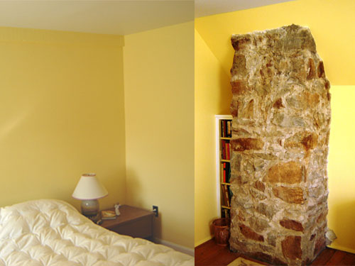 Holly Kidder made my bedroom look beautiful. She understood my need for sunlight, encouraged my color choices and suggested finishes to enhance the effect I wanted. This was a repair job as well as a paint job. A rough-cut stone chimney that runs up through a knee wall had leaked repeatedly and made a mess. The sagging drywall had to be torn out and new wall pieced in. Holly used water proof drywall to help prevent recurring damage. There is absolutely no way anyone can tell where the repair is – and the wall fits tightly around all the surfaces of the chimney, too. The difference is so amazing. Holly and her crew hung dust curtains, and picked up and cleaned at the end of every day, so there was minimum disruption. Working with Holly was a very positive experience and she will do all my future painting.